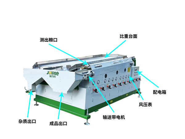 该机可有效去除物料中的秕籽、芽籽、虫蛀粒、霉变粒、黑粉病粒等比重较轻的杂质,适用于小麦、玉米、水稻、各种豆类、西瓜籽及各种油料作物的精选加工。