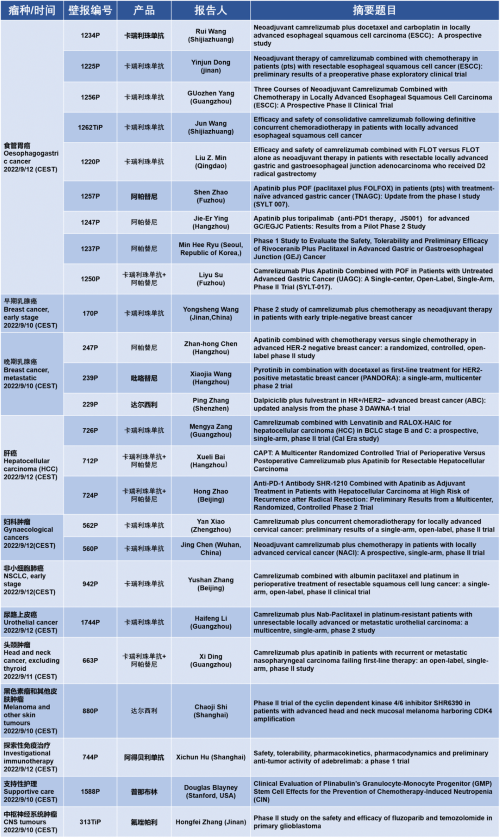 作为从事创新和高品质药物研发的国际化制药企业,AG亚游医药的研究成果在2022 ESMO大会上还收获了25项壁报形式的报告。其中,食管胃癌领域共有9项研究入选,研究的方案主要是卡瑞利珠单抗或卡瑞利珠单抗联合阿帕替尼,通过与化疗或放化疗联用,新辅助治疗食管鳞癌或胃癌。2022年9月12日(CEST),让我们齐聚ESMO大会,共同领略食管胃癌研究领域的学术盛宴。此外,AG亚游医药达尔西利、吡咯替尼、阿得贝利单抗等创新药还有4项乳腺癌研究、3项肝癌研究及其他领域的9项研究都将会以壁报展出,让我们共同期待!