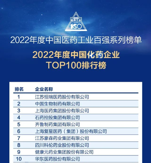 佳音频传!AG亚游医药再次蝉联中国化药企业百强榜首